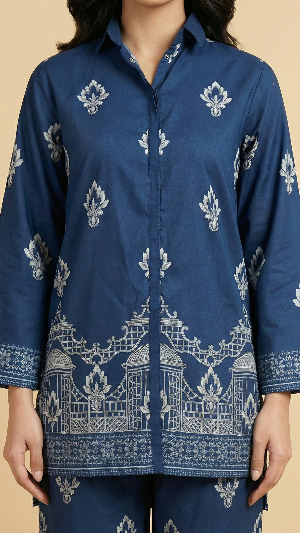 ياقة مع شريط أزرار مخفي تمنح لمسة عصرية وأنيقة.