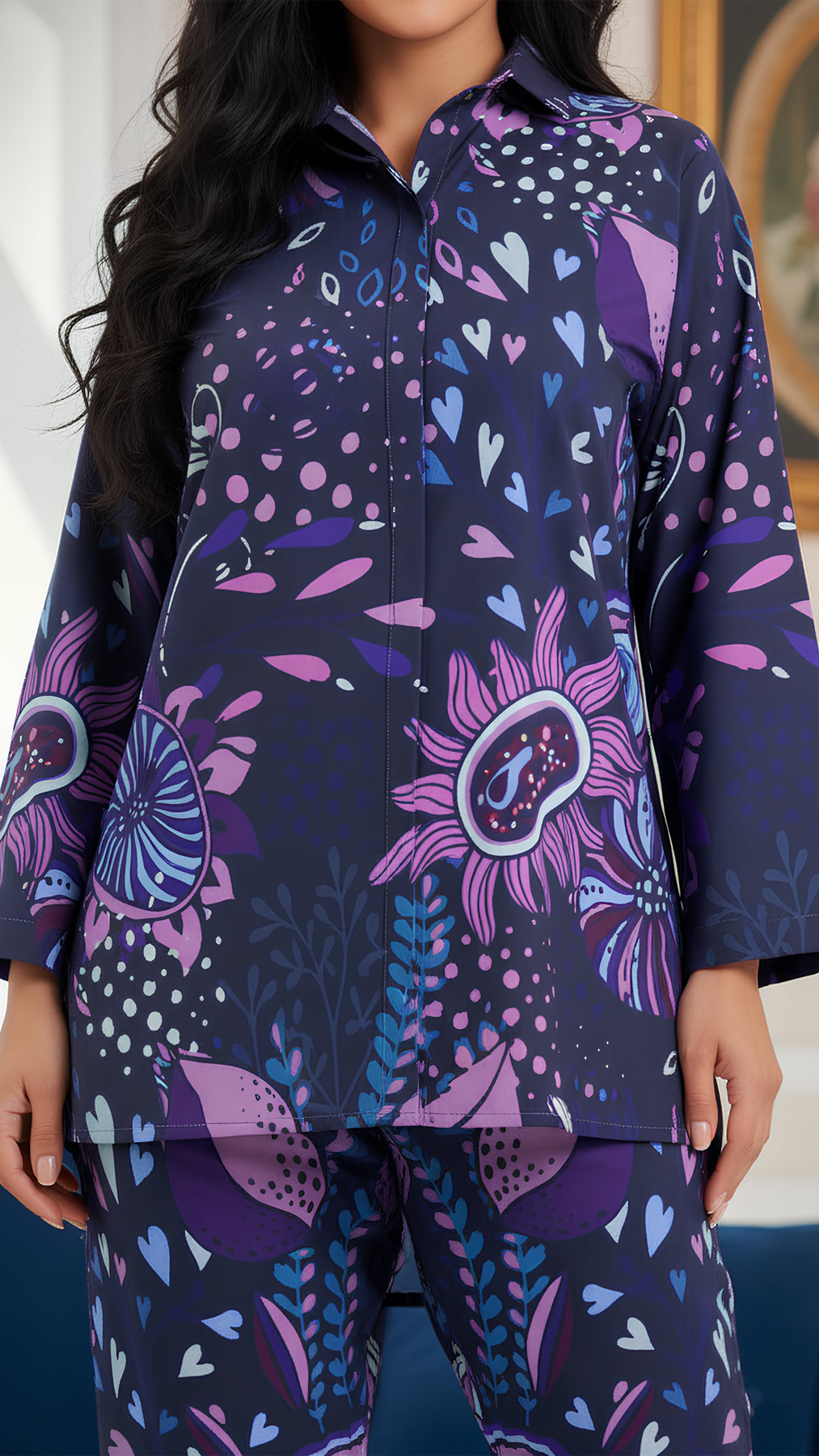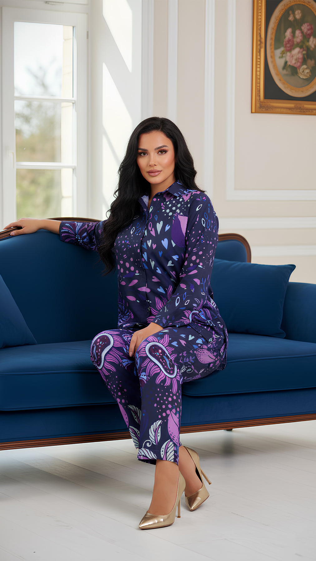 أعيدي تعريف الأناقة اليومية مع "ميريل بلو"، طقم نسائي أنيق من قطعتين مصنوع من Cambric الناعم والسلس الذي يسمح للبشرة بالتنفس ويتميز بانسيابية رائعة ولمعان خفيف. التصميم المريح يناسب جميع الأجسام، بينما تضفي البنطال الواسع والقميص الانسيابي توازناً مثالياً بين الراحة والرقي.