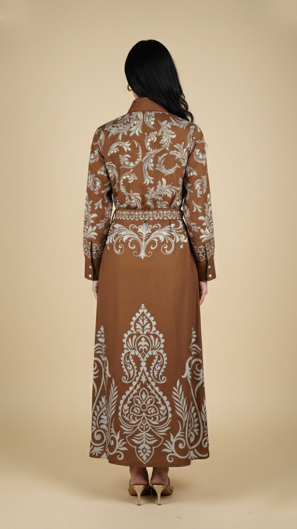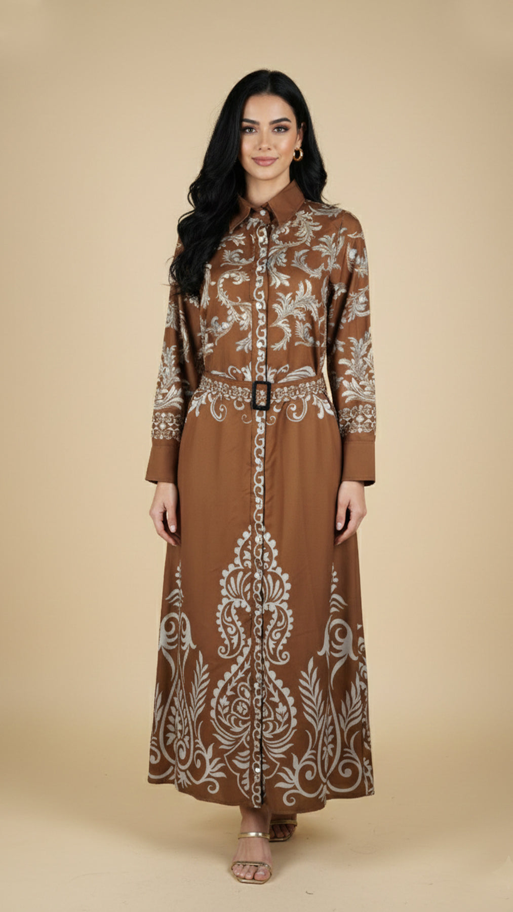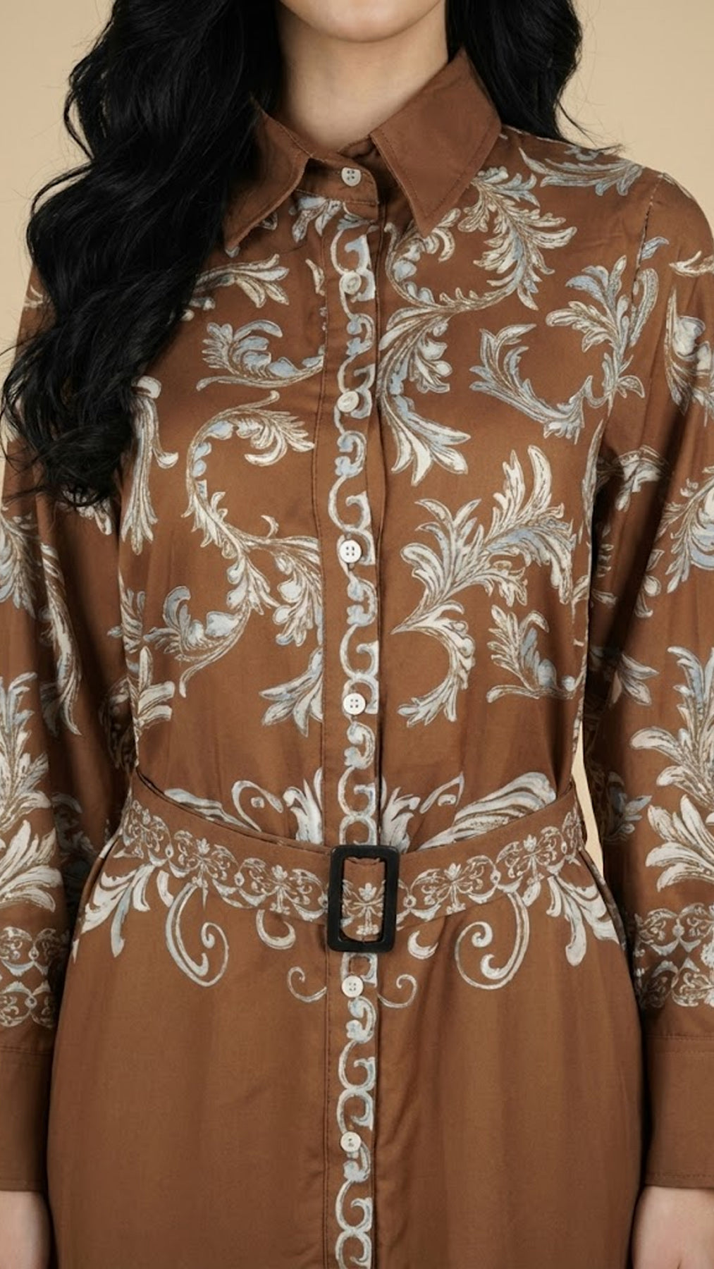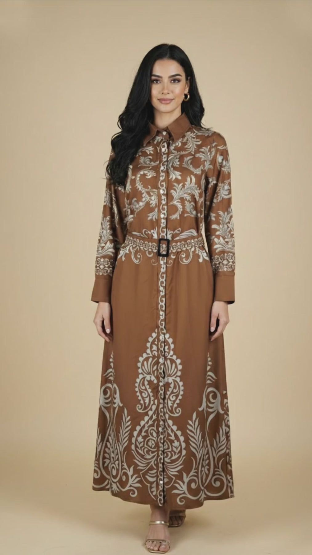 تفاصيل الخصر: حزام متناسق يحدّد الخصر، ليمنح شكلاً جذاباً ولمسة نهائية مصقولة.