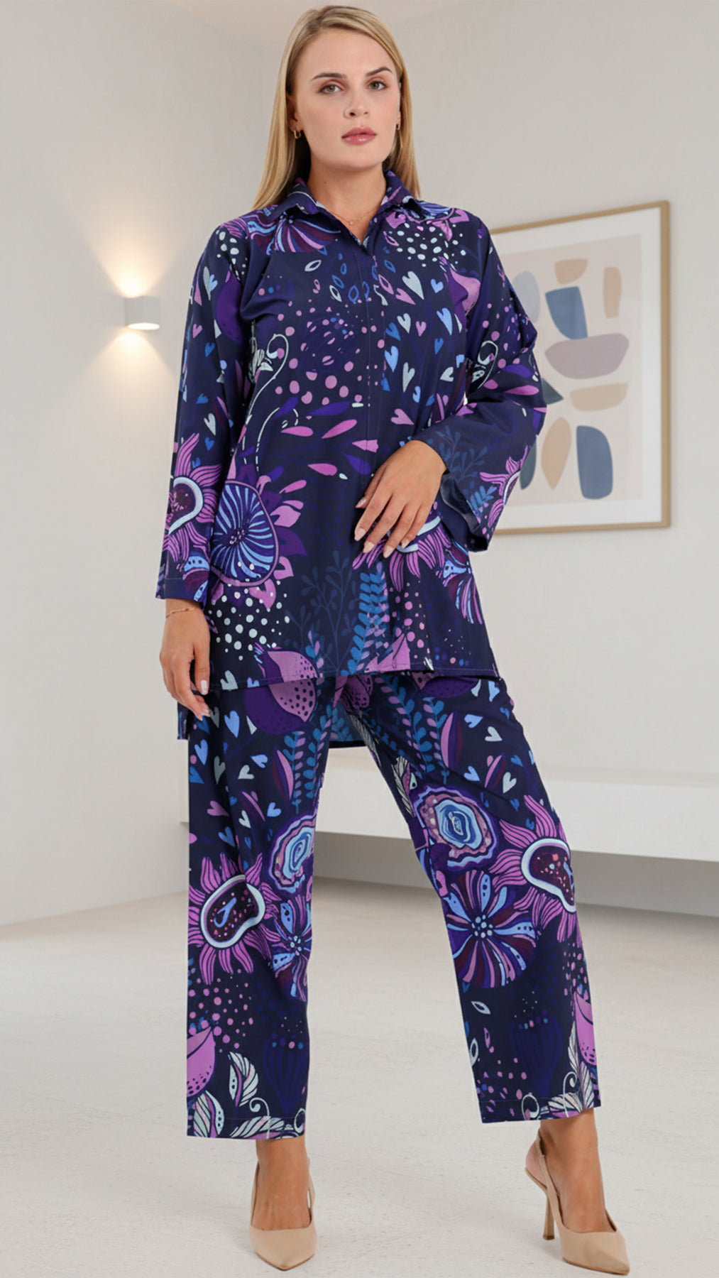 Redefine everyday elegance with Mirelle Blue, a chic two piece set for woman—crafted in breathable, silky-smooth cambric with a graceful drape and soft sheen. The relaxed fit flatters every silhouette, while the wide-leg pants and fluid top strike the perfect balance between comfort and sophistication.
