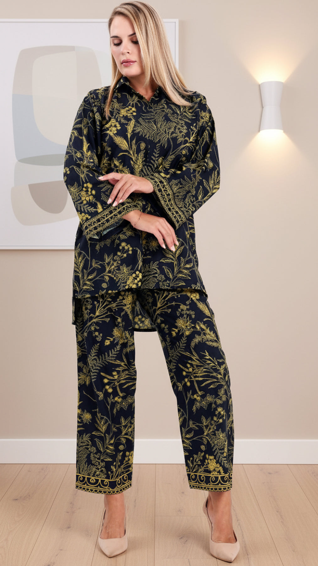 Redefine everyday elegance with Zarelle Black, a stylish two piece co-ord set for woman—crafted in breathable, silky-smooth cambric with a graceful drape and soft sheen. The relaxed fit flatters every silhouette, while the wide-leg pants and fluid top strike the perfect balance between comfort and sophistication.