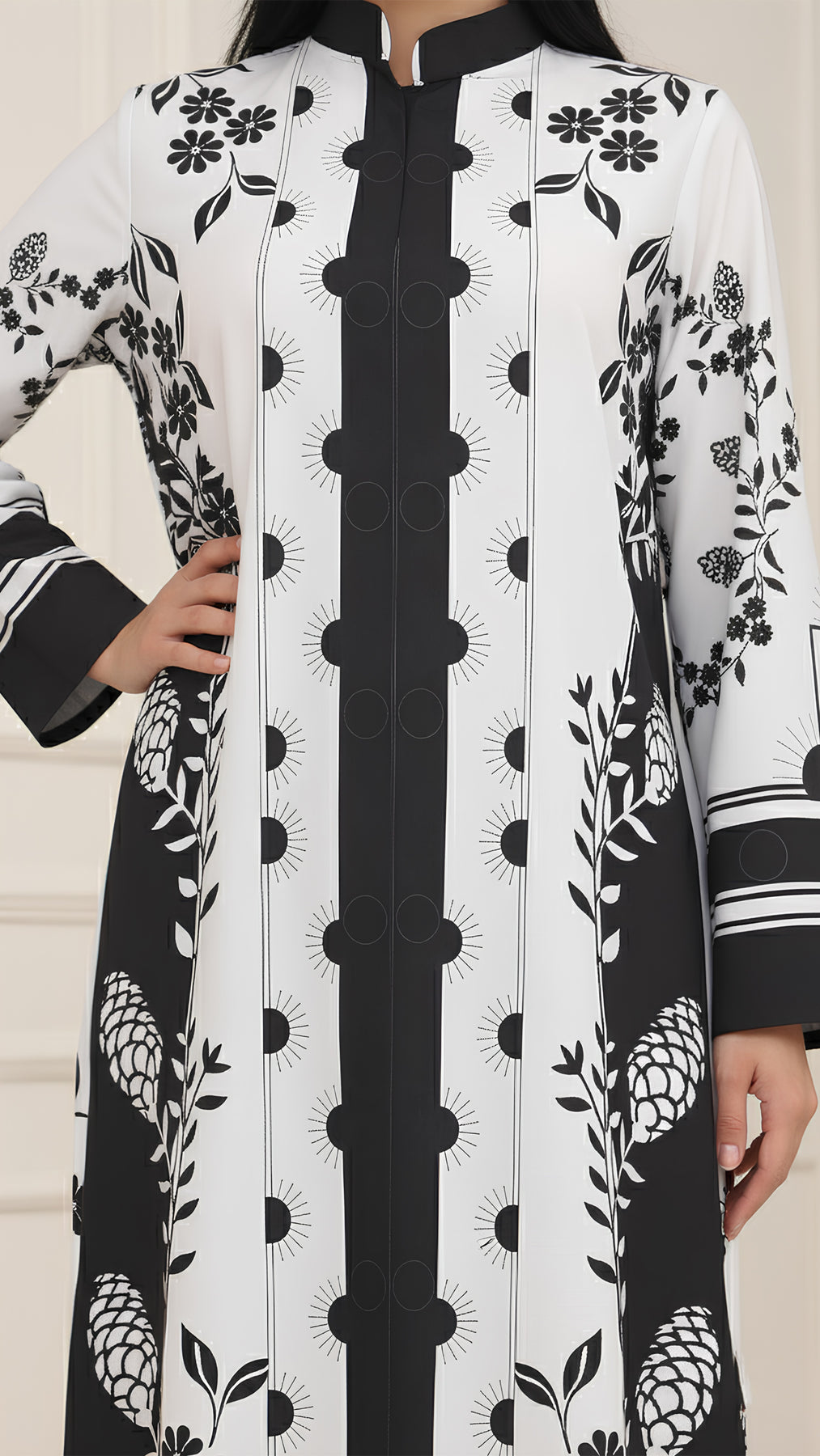 Slip into luxe ease with Avenya, a stylish white and black kaftan dress for women,—designed to blend comfort with quiet sophistication. Crafted from premium breathable fabric suitable for all seasons, it drapes beautifully with a soft sheen and breathable feel that moves with you.