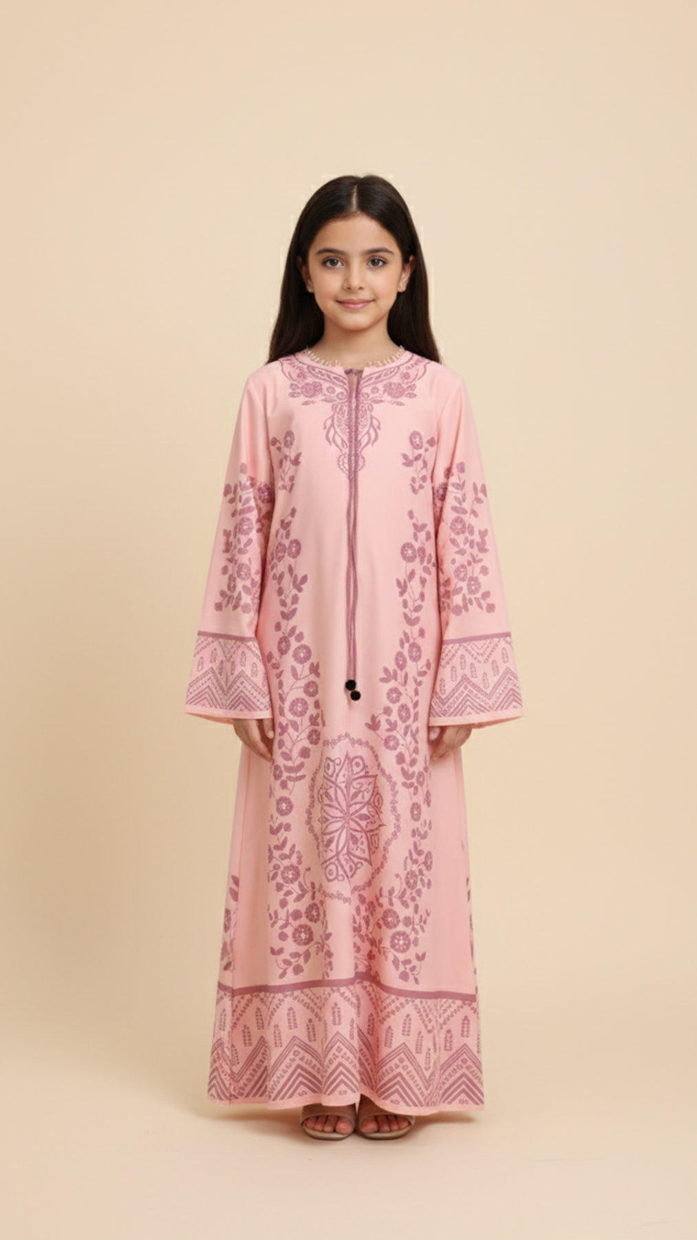 Chic, comfortable, and effortlessly graceful — Aurelya Bloom is a charming kaftan dress for girls designed with playful elegance in mind. Crafted from premium breathable fabric suitable for all seasons, it drapes softly with a gentle sheen and easy movement, keeping her stylish and comfortable all day long.