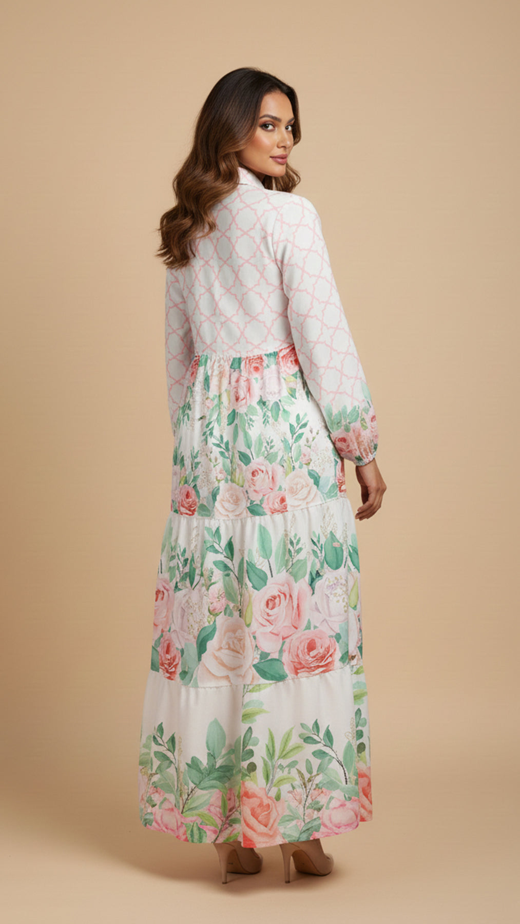 Sleeve Design: Full-length sleeves with gathered cuffs enhance the feminine charm while maintaining comfort.