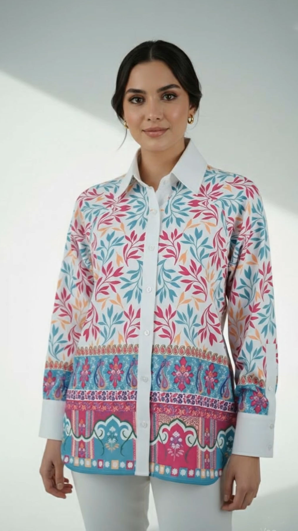 Rosalique Button-Down Shirt celebrates the art of color and pattern with its lively fusion of hues and refined detailing. Defined by its bold yet balanced design, it brings together playful vibrance and tailored sophistication. Perfect for days when you want to stand out with ease, Rosalique embodies the spirit of confident femininity — radiant, graceful, and effortlessly chic.
